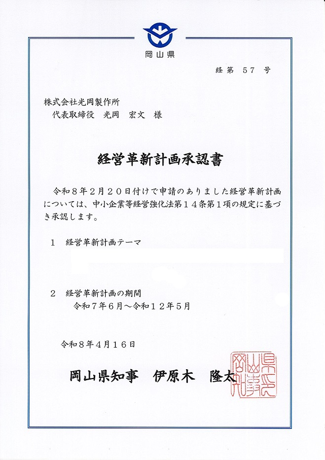 - 株式会社光岡製作所 会社設立50周年 (創業82年)